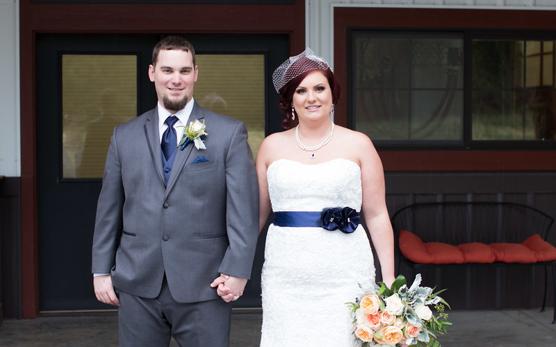 When I sat down with Melissa and Jason to discuss their upcoming wedding, one of the first things they shared was that they wanted to create an environment of love filled with their close family. Melissa and Jason had chosen to have a guest list filled with mainly family members to celebrate the exciting day. The two wanted the focus of the day to truly be on the joining of their two families (Melissa and her son with Jason). They chose simple, yet beautiful décor with hints of navy and peach to enhance the sweetly intimate atmosphere at Red Lily Vineyards.
